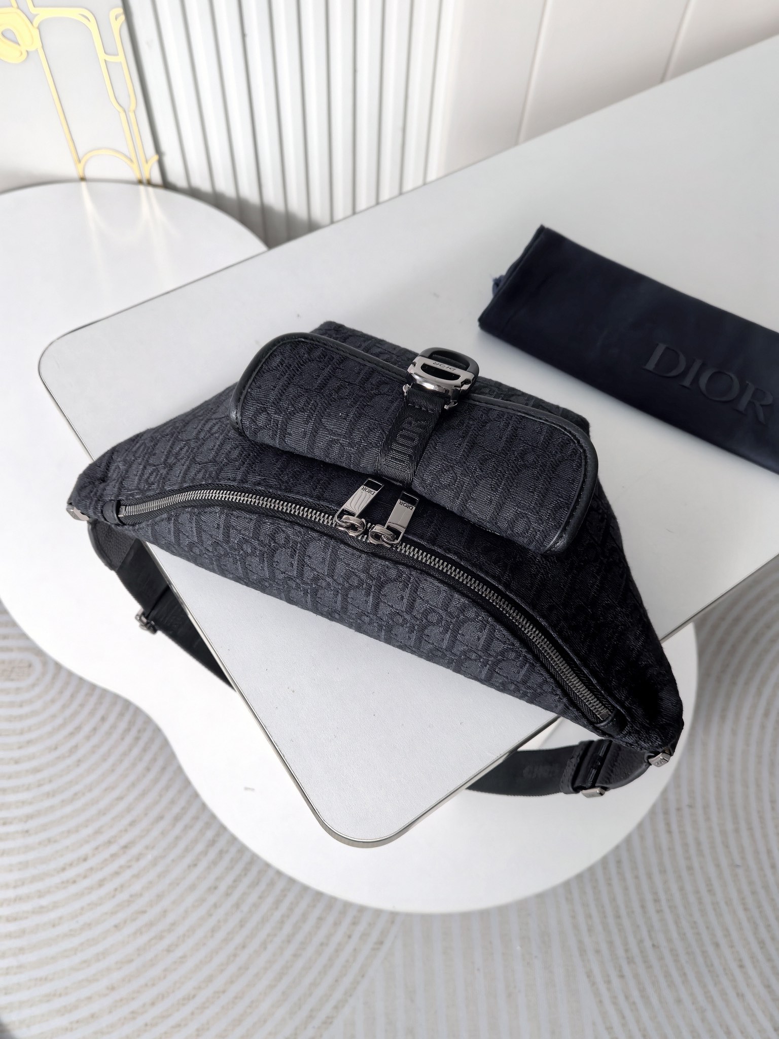 Dior Waist Bag Carefully crafted with black Oblique print fabric and other materials Equipped with adjustable leather straps, which can be worn around the waist or carried diagonally.