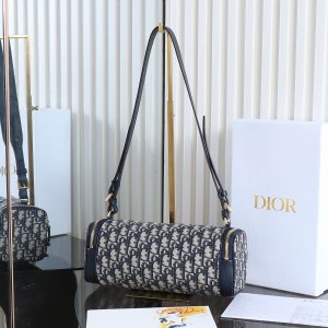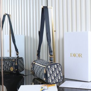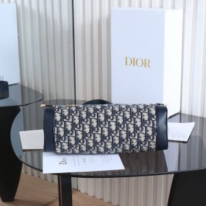 East-West Mini Handbag Handmade with blue Oblique printed fabric, it comes with adjustable and detachable leather shoulder strap, allowing for comfortable carrying on the shoulder or cross-body. Detachable leather shoulder strap Size: 27*11*10 cm