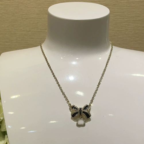 Enamel with diamond-encrusted bow neckpiece quantity