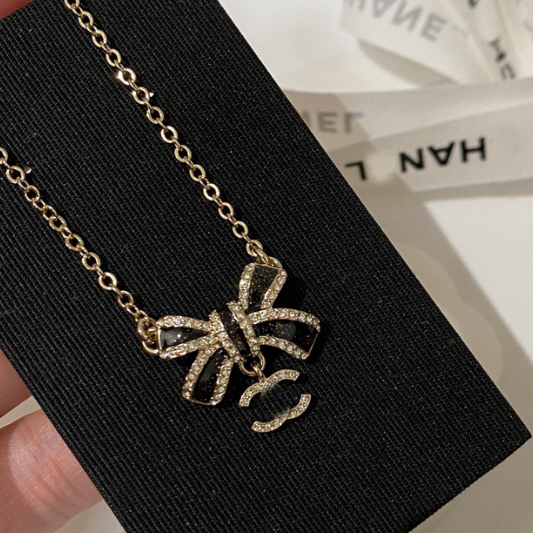 Enamel with diamond-encrusted bow neckpiece