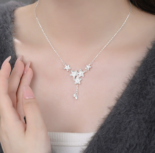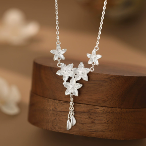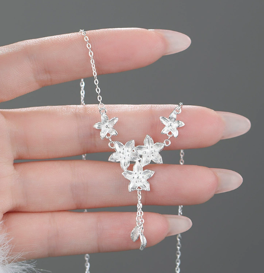 color Five Flower Tassel Necklace – Silver Purity Pure Silver