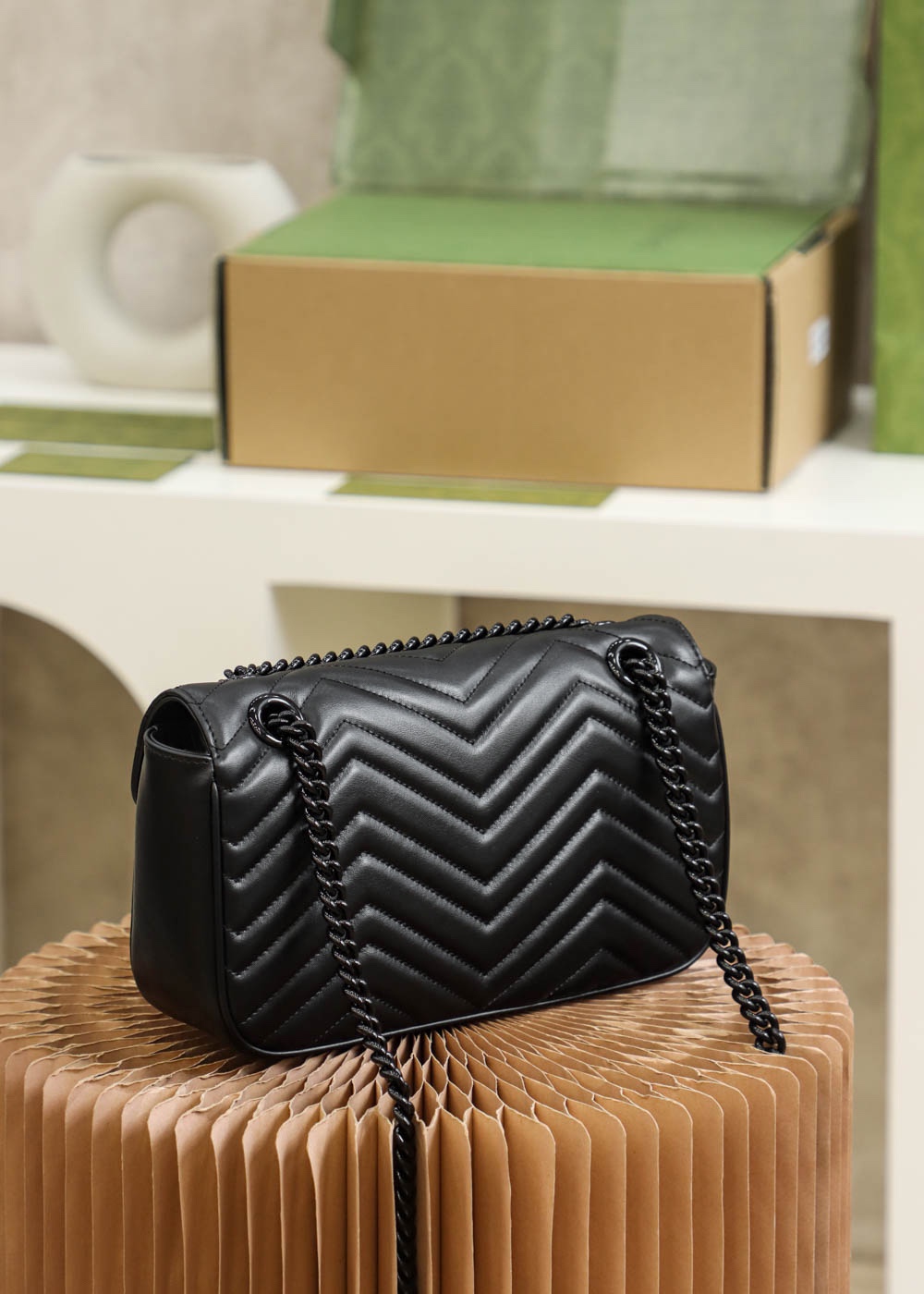 GG Marmont has a fashionable and versatile style. It features all black metal fasteners. It is extremely dark and stylish, both beautiful and fierce. The king of versatility pairs perfectly with the trendsetters.