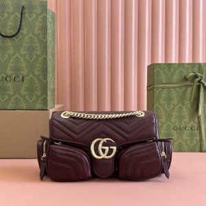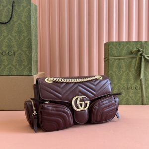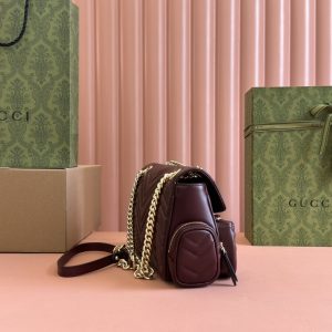 Gucci Rosso Ancora features a red leather lining, light golden accents and adjustable leather with a chain strap, adding great charm to this small-sized backpack. Adjustable chain strap (length can be adjusted from 29 cm to 53 cm) Small size: 25.5 cm (width) x 15 cm (height) x 7 cm (depth)