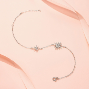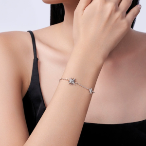 Pure silver clover necklace with crushed ice CNC pendant zircon for autumn and winter