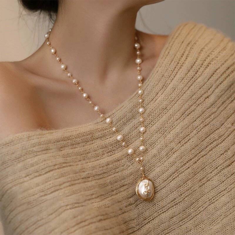 Sea Blue Treasure s925 Pure Silver Pearl Necklace