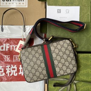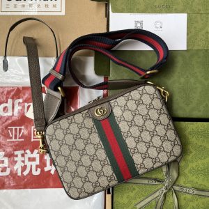 Ophidia series backpack Classic metal accessories and distinctive features have been incorporated into this timeless piece to enrich its brand heritage. Olive wood-colored canvas, made from eco-friendly materials. Model: 699439 Size: 24.5 x 16 x 4.5 centimeters.