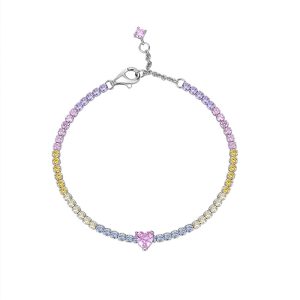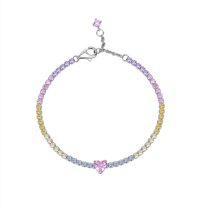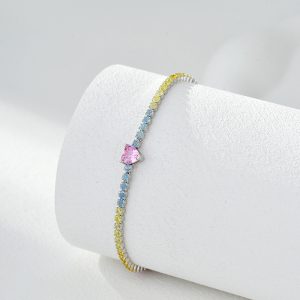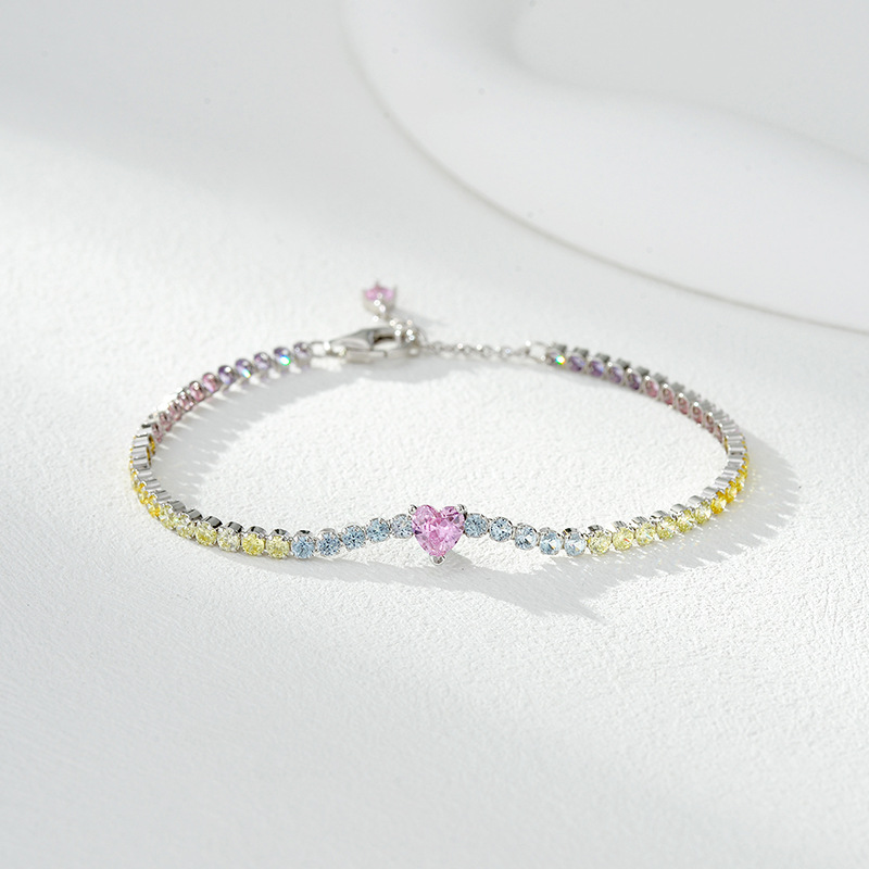 Candy colored heart-shaped zircon necklace with fashionable 18k gold plating