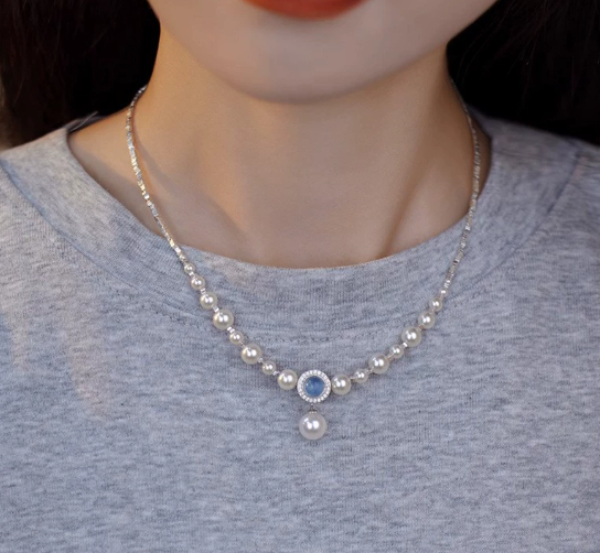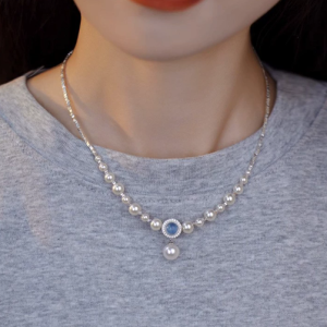 processing technology handmade modeling Geometric item number chain style pearl necklace Is it multi-layered No pendant material 925 silver