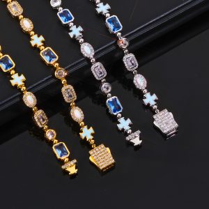 Cross-shaped gemstone chain zirconium men’s bracelet, luxurious and high-end, Australian jewelry accessory